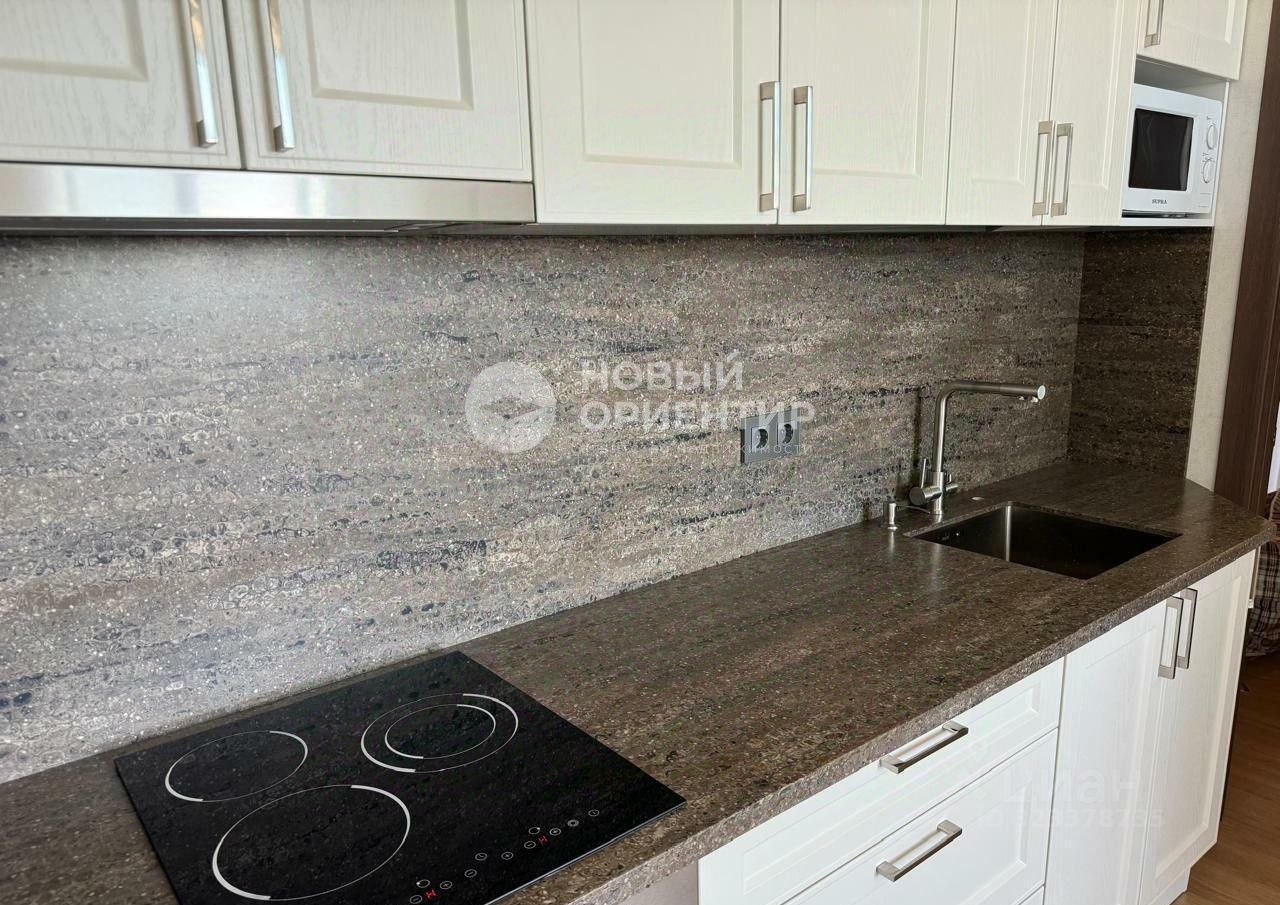 * Кухня: выполнена на заказ под потолок с столешницей из искусственного камня. Вся современная бытовая техника остаётся.