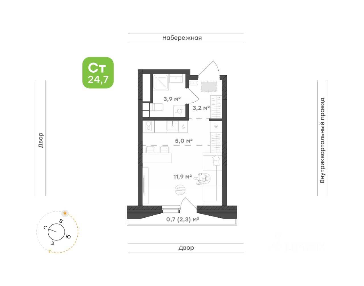 Зона гостиной и спальни позволяет создать личный уголок для спокойного сна и тёплых бесед с гостями