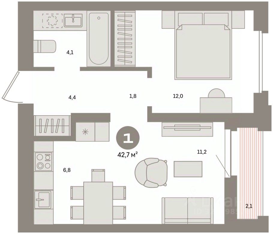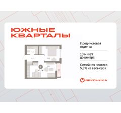 Квартира с кухней-гостиной и одной спальней в Южных кварталах. Особенности планировки: лоджия, предчистовая отделка.
