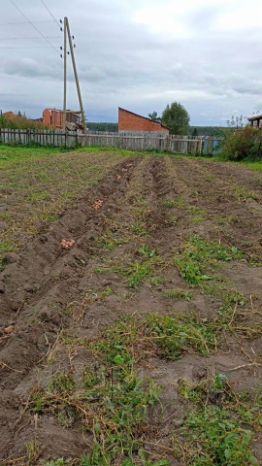 Земельный участок разработан под посадки, есть теплица( сажают картофель, имеются кустарники смородины,крыжовника,вишни,ирги,черноплодной рябины, овощные гряды).