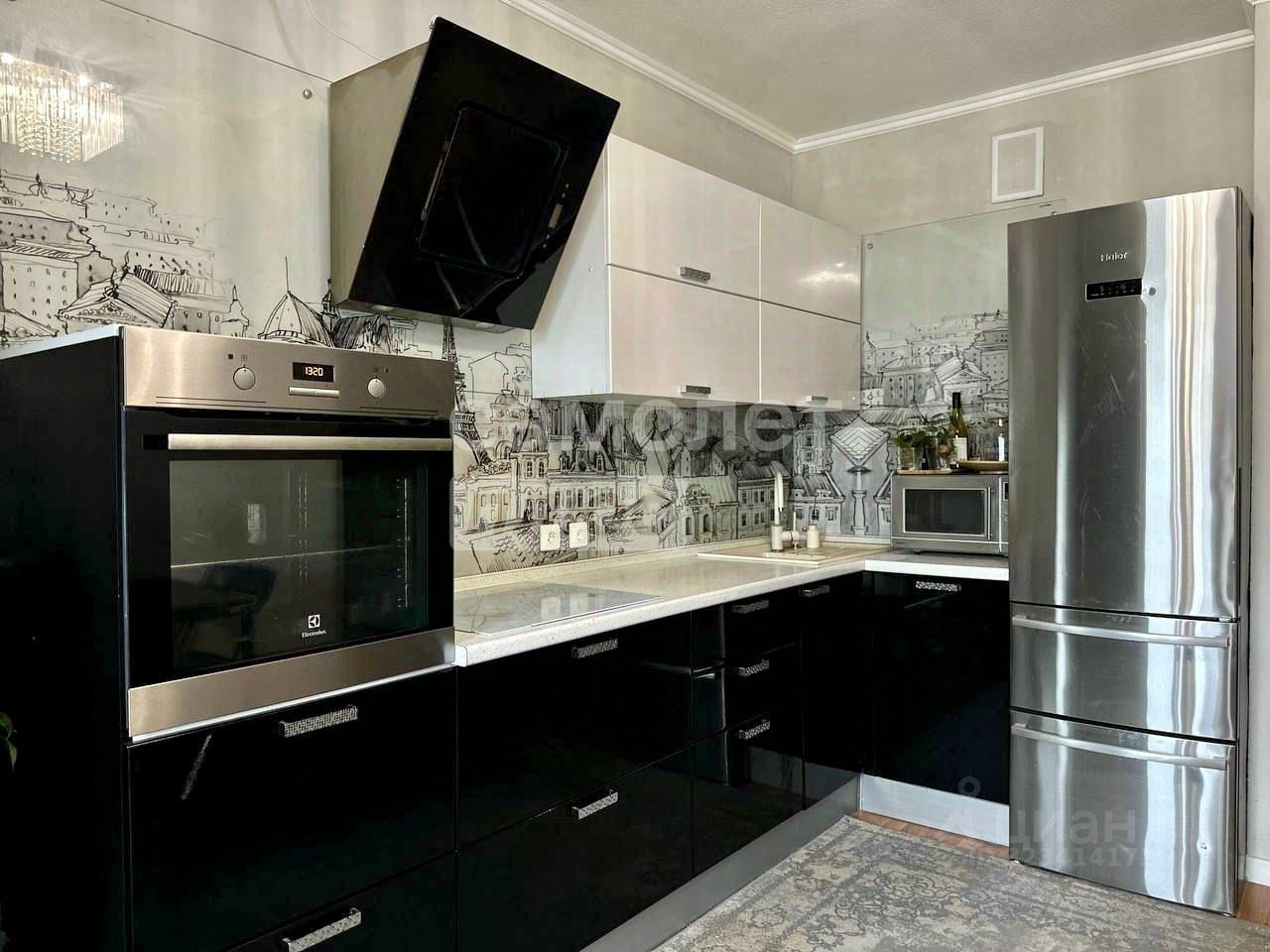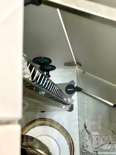 На кухне импортные доводчики на дверцах Blum, духовой шкаф Electrolux, посудомоечная машина Bosh, холодильник Haier.