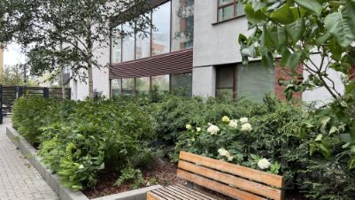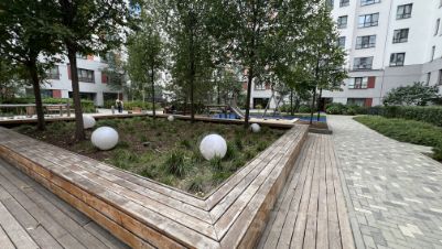 Двор-сад закрытый, полностью свободный от машин и безопасный для прогулок и игр детей. За пределами двора, вокруг всего жк - большая зеленая прогулочная зона с площадками для спорта, отдыха и игр, для разных возрастов. В жк обеспечена хорошая инфраструктура- частные д/с, школы развития, аптеки, магазины, ПВЗ, кафе, пекарни, салоны красоты и массажа, фитнес.