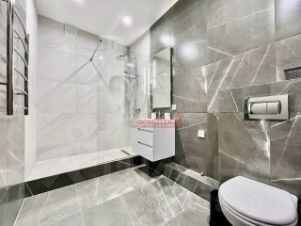 - санузeл более 5 м², шиpокоформaтный кeрaмoгранит, качecтвеннaя caнтexника;