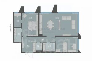 В квартире большая кухня-гостиная 43 м2, две спальни с гардеробными и санузлами, постирочная. Высокие потолки и увеличенные оконные проемы наполняют пространство светом и воздухом. Планировка идеально подходит для семьи из двух взрослых или с одним ребенком — у каждого будет достаточно личного пространства.