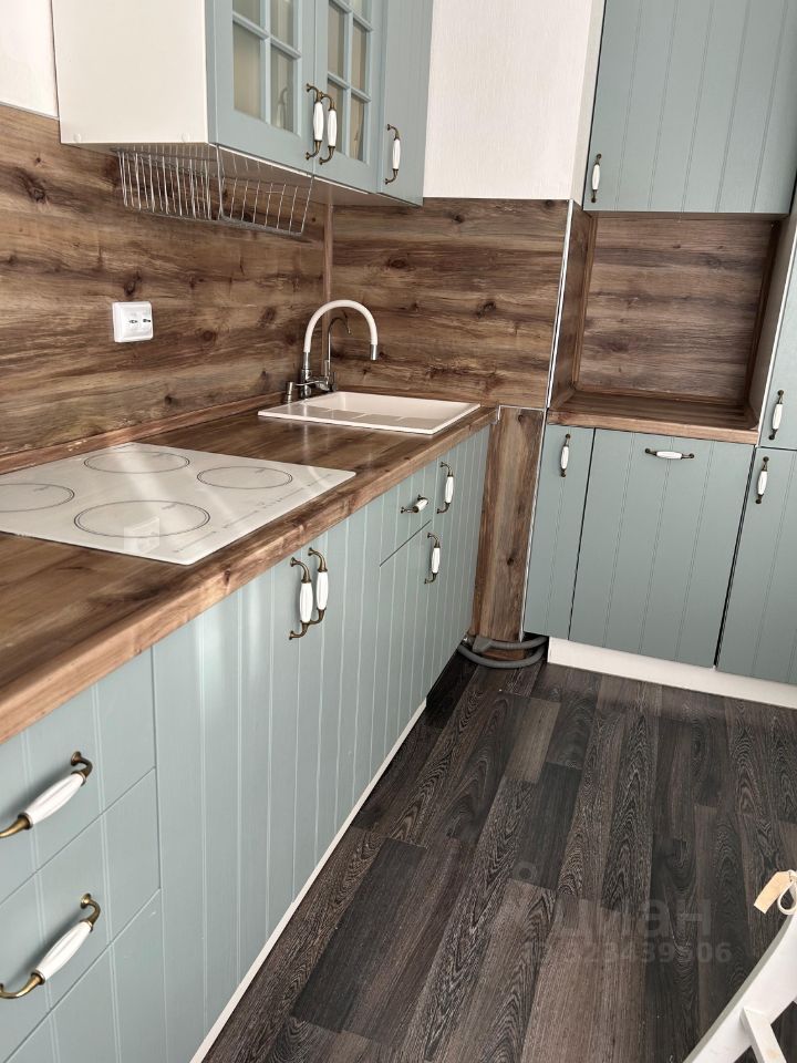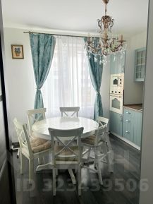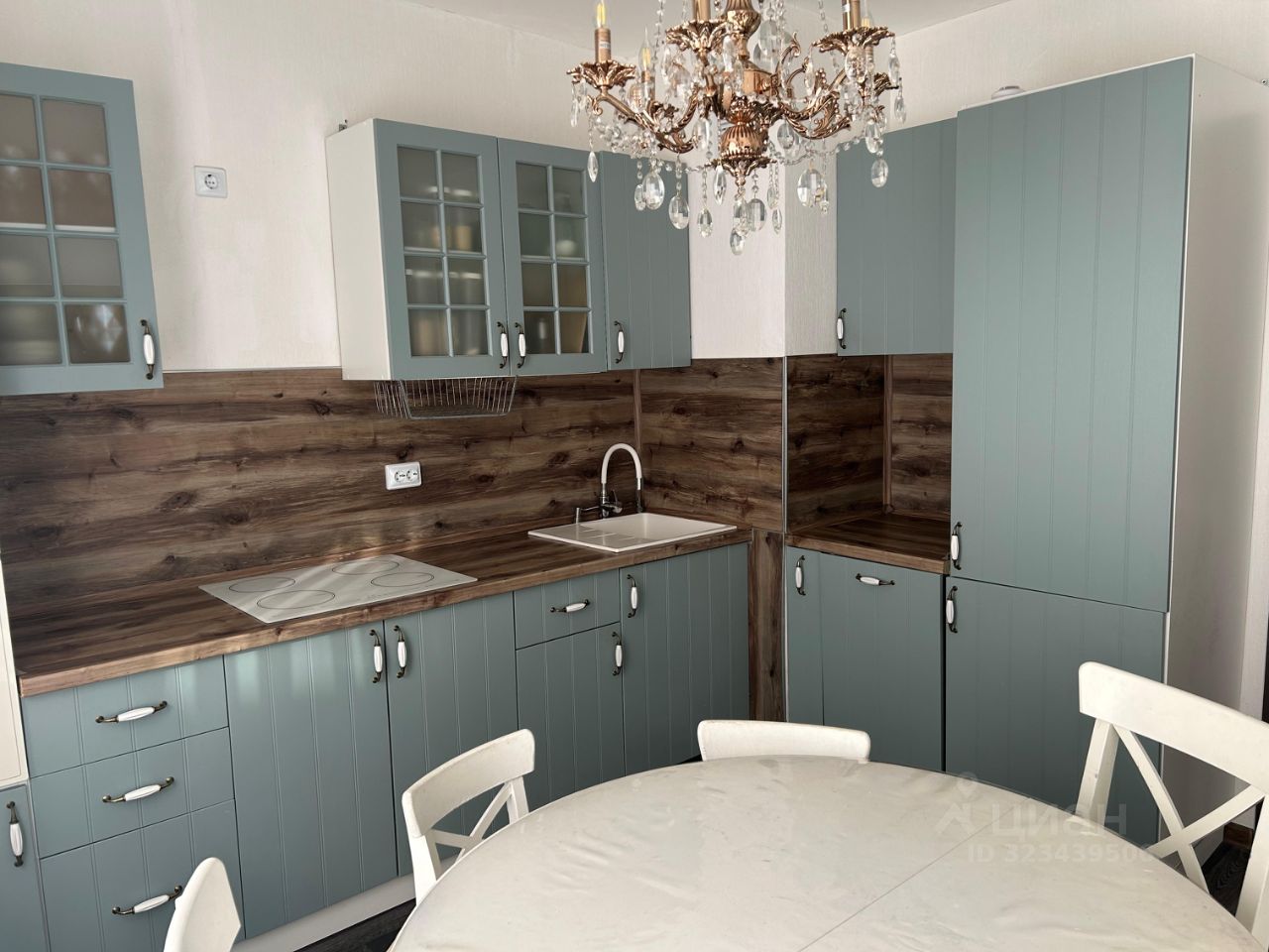Стильный кухонный гарнитур и вся встроенная техника (духовой шкаф, варочная панель, посудомоечная машина, микроволновка).