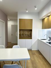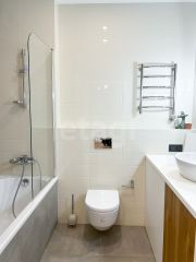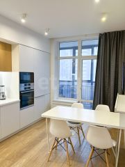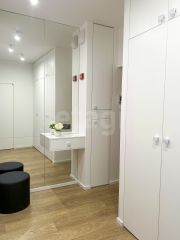 Качественный и стильный ремонт выполнен по дизайн-проекту. Правильное решение по размещению мест хранения обеспечивает оптимальное использование пространства помещений. В интерьере использован шпон дуба.