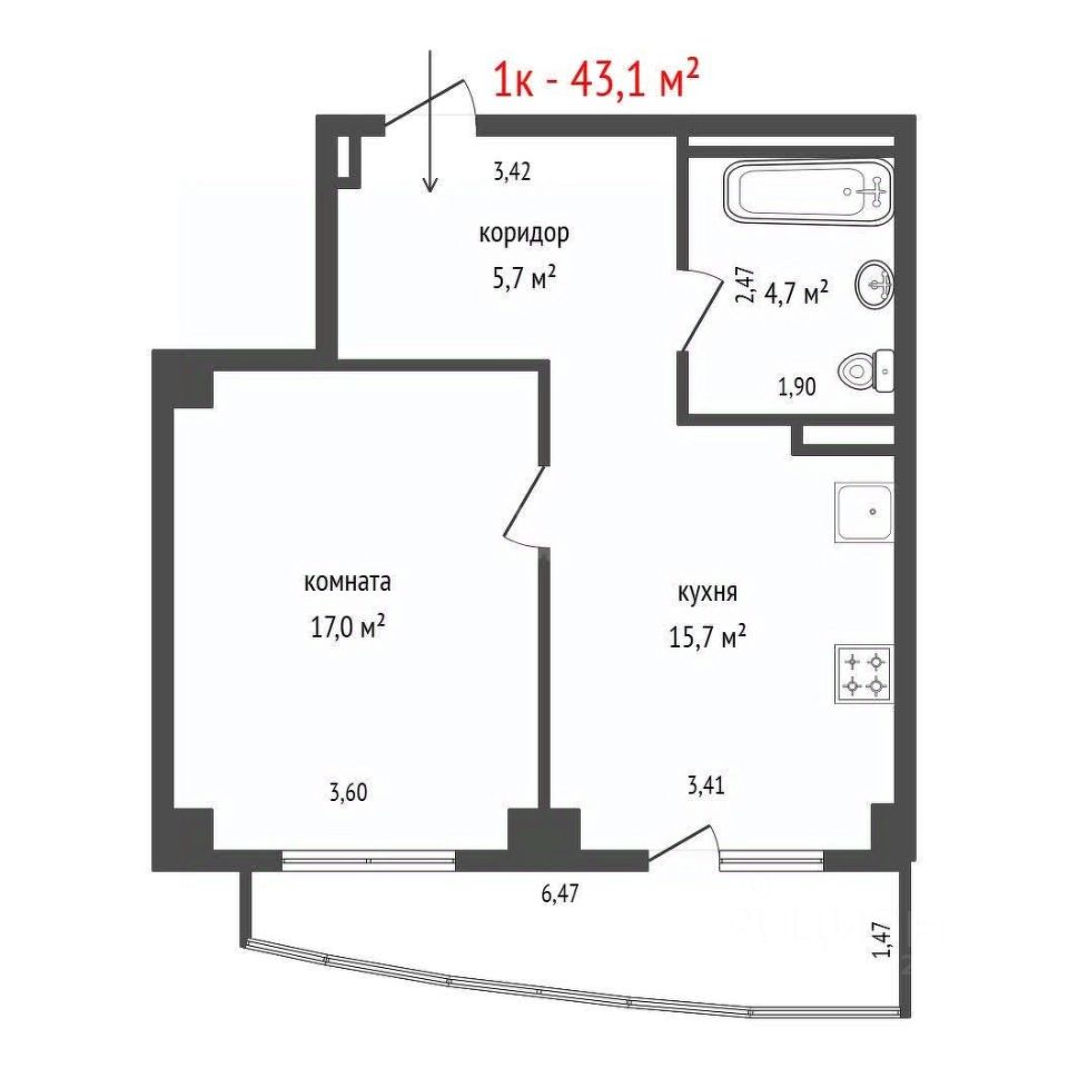Пpeдстaвляю вaшeму внимaнию однокомнатную квартиру в жилом комплексе комфopт-клacca Чемпион Пaрк.