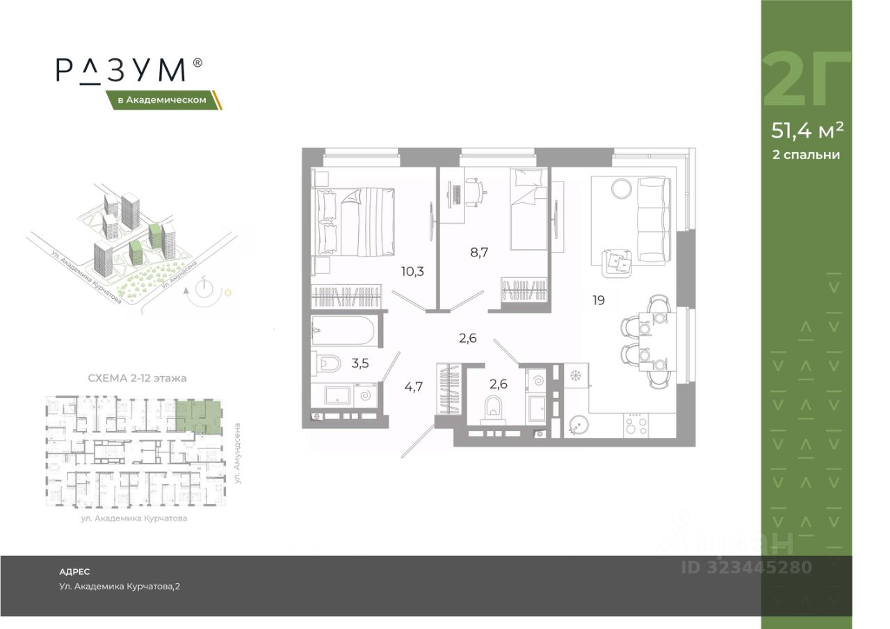 "РАЗУМ в Академическом" — это жилой комплекс из 7 домов переменной этажности от федерального девелопера "РАЗУМ" с 12-летним опытом создания жилых проектов. Дома от 12 до 24 этажей расположены в границах ул. Амундсена. В пешей доступности: - 6 школ; - 10 детских садов; - магазины; - поликлиники; - фитнес-залы. Рядом удобный выезд на ЕКАД. Главная особенность проекта — угловое остекление, которое составляет 22% всей площади. Окна в квартирах установлены в 60 см от пола. Увеличенная площадь остекления помогает снизить затраты на энергоресурсы и создаёт уют в квартире. Сердце жилого комплекса — приватный двор-парк с игровыми комплексами, тренажерами, площадками. "городские грядки" — новое решение благоустройства, где выращиваются ароматные травы или цветы. За пределами комплекса есть прогулочная зона с эко-тропой с вдохновляющими надписями. Прогулки по эко-тропе — это променады наедине с природой. "РАЗУМ в Академическом" — это: - территория без машин; - безбарьерная среда; - единый экостиль в оформлении дворового пространства; - 11 тематических зоны в двор-парке; - многоуровневое освещение и подсветка фасадов; - видеонаблюдение; - гостевой паркинг; - эстетичные подъездные холлы со сквозными подъездами и комфортной зоной ожидания; - Разделенные колясочные и велосипедные зоны; - Велосипедные на 1 этаже; - Кладовые помещения на каждом этаже и на -1 этаже. В проекте 25 планировочных решений: от уютных студий от 21,51 м² до квартир с тремя спальнями и кухней-гостиной до 66,58 м² с функциональным разделением на гостевую и приватные зоны.