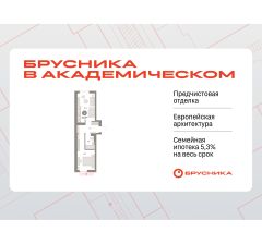 Квартира с кухней-гостиной и одной спальней в Бруснике в Академическом. Особенности планировки: вид во двор, предчистовая отделка, балкон.