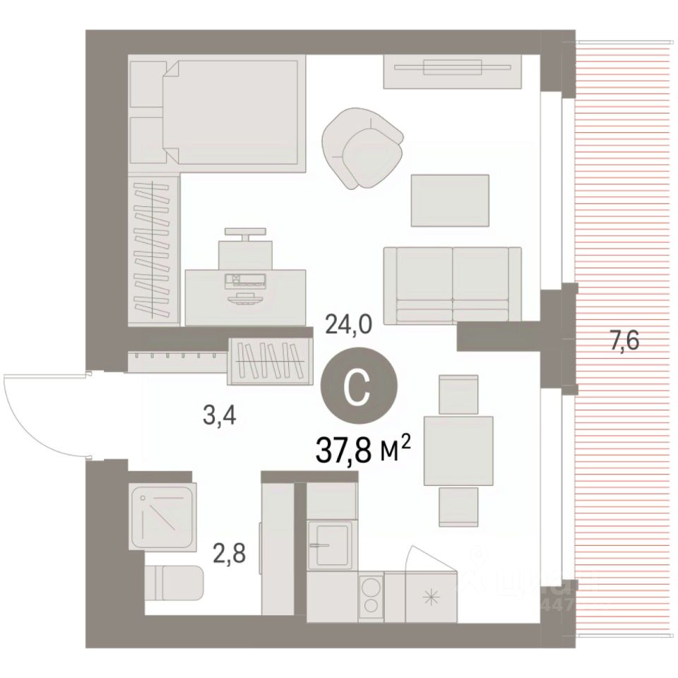 Студия в Бруснике в Академическом. Особенности планировки: предчистовая отделка, терраса на крыше.
