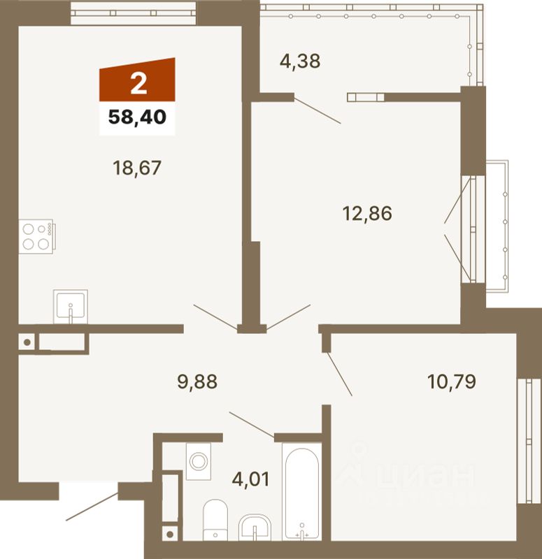 Продается Двухкомнатная квартирав Верх-Исетском районе города Екатеринбург. Квартира находится 6 на этаже, площадью 58.4 кв.м. Срок сдачи: 3 квартал 2027 года.
