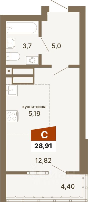 Продается Студияв Верх-Исетском районе города Екатеринбург. Квартира находится 13 на этаже, площадью 28.91 кв.м. Срок сдачи: 3 квартал 2027 года.
