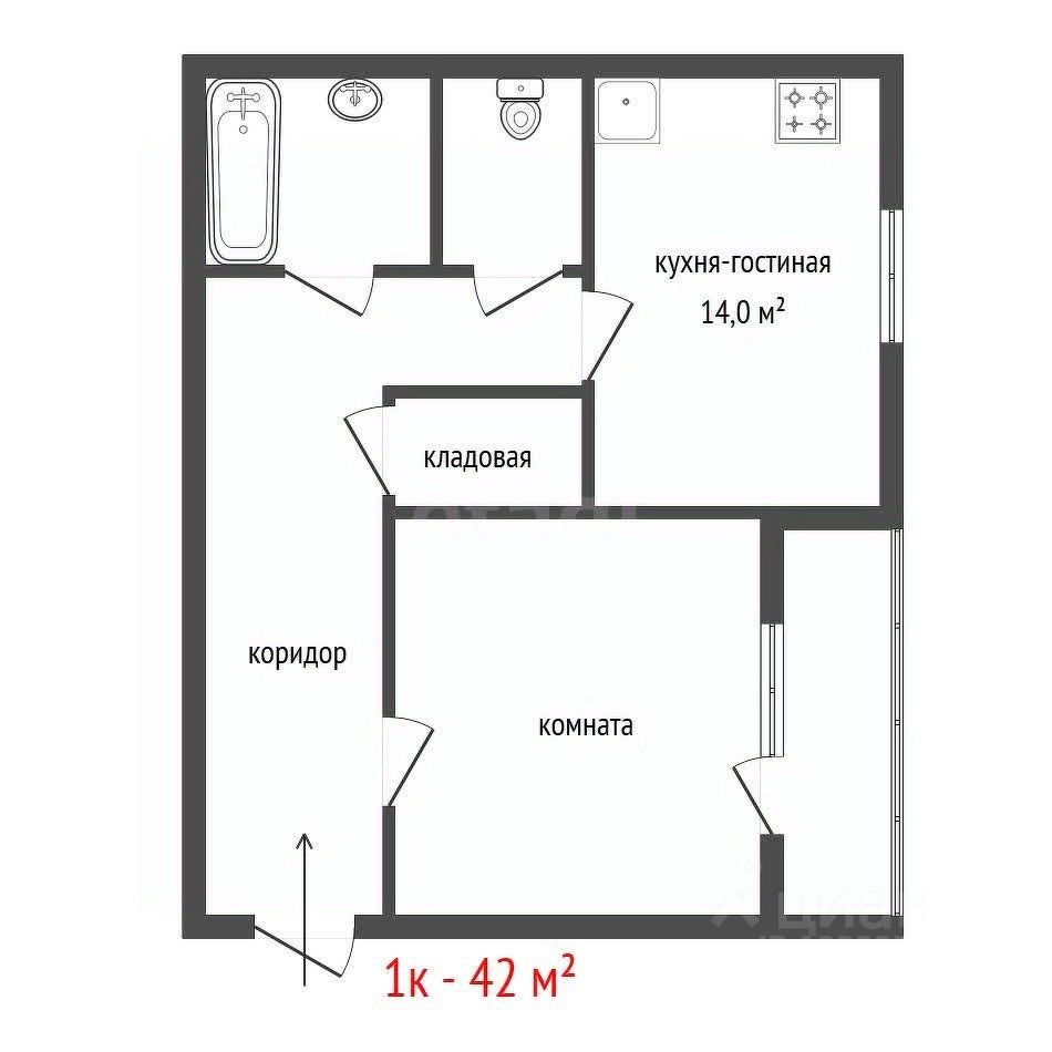 ПРОДАЕТСЯ 1 комнатная квартира 42 м2.