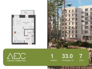 В экологически чистом районе Широкой Речки, всего в 10 км от центра Екатеринбурга, продается студия площадью 33.00 кв. м. Квартира находится в 4/3 корпусе жилого комплекса комфорт-класса "ЛЕС" (Застройщик - компания "Железно").