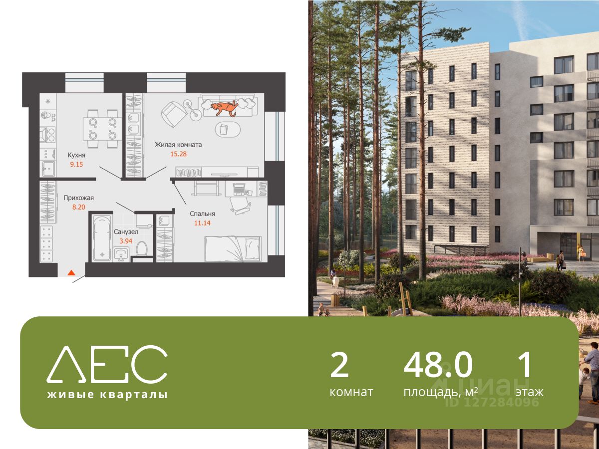 В экологически чистом районе Широкой Речки, всего в 10 км от центра Екатеринбурга, продается 2-комнатная квартира площадью 48.00 кв. м. Квартира находится в 4/3 корпусе жилого комплекса комфорт-класса "ЛЕС" (Застройщик - компания "Железно").