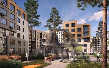 Лес - главный герой квартала. Дома находятся в окружении соснового бора, а их этажность - до 8 этажей - не превышает крон сосен. В новом жилом комплексе большое внимание уделено заботе о сохранении деревьев и реализации специальных программ по высадке новых, чтобы жители наслаждались прекрасной растительностью каждый день.