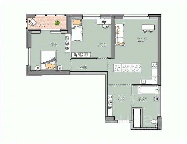Продаётся 2-комнатная квартира в сданном доме (Печатников, 5 (Дом 1)), срок сдачи: IV-кв. 2024, общей площадью 64.935 кв.м., на 15 этаже.
