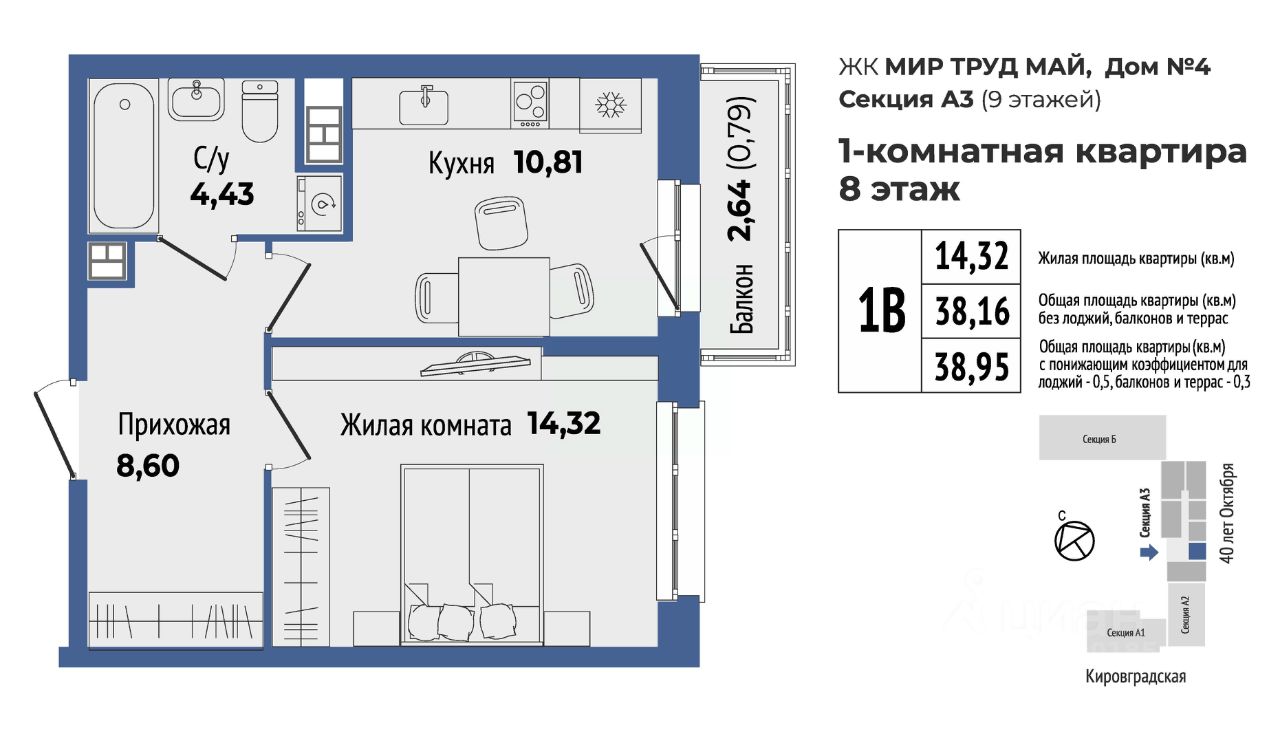 Продаётся 1-комнатная квартира в сданном доме (40-летия Октября, 33 (Дом 4 секция А)), срок сдачи: II-кв. 2025, общей площадью 38.95 кв.м., на 8 этаже. Жилой комплекс "Мир Труд Май" - современные дома под лозунгом традиций. Уютный квартал в самом сердце Уралмаша - в квадрате улиц 40 лет Октября - Кировградская - Ломоносова - Калинина. Выполняется застройка разной этажности, которая состоит из четырех многоквартирных домов с частными дворами, подземным паркингом с кладовыми.