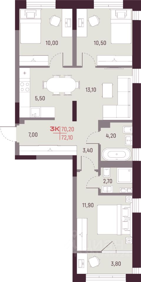 • Продуманные планировки с мастер-спальнями, гардеробными и даже ванными комнатами с окном.