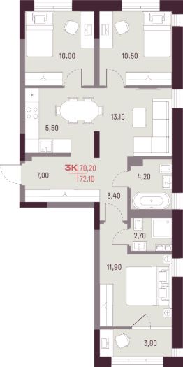 • Просторные планировки с потолками до 3 метров и террасами, выходящими на зеленые дворы.