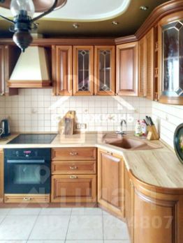 * Кухонный гарнитур из массива дерева, оборудован встраиваемой бытовой техникой.