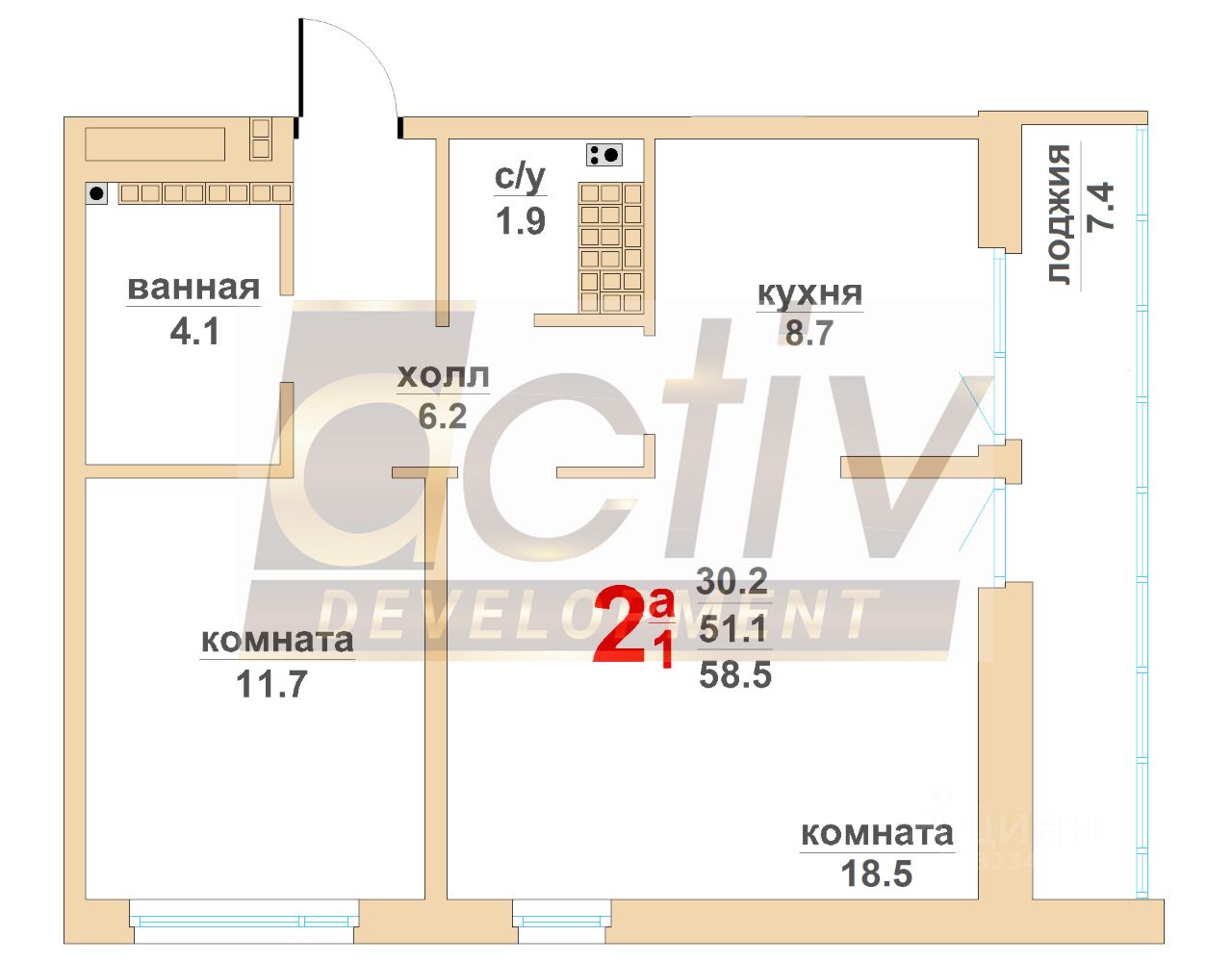 51,1 м²