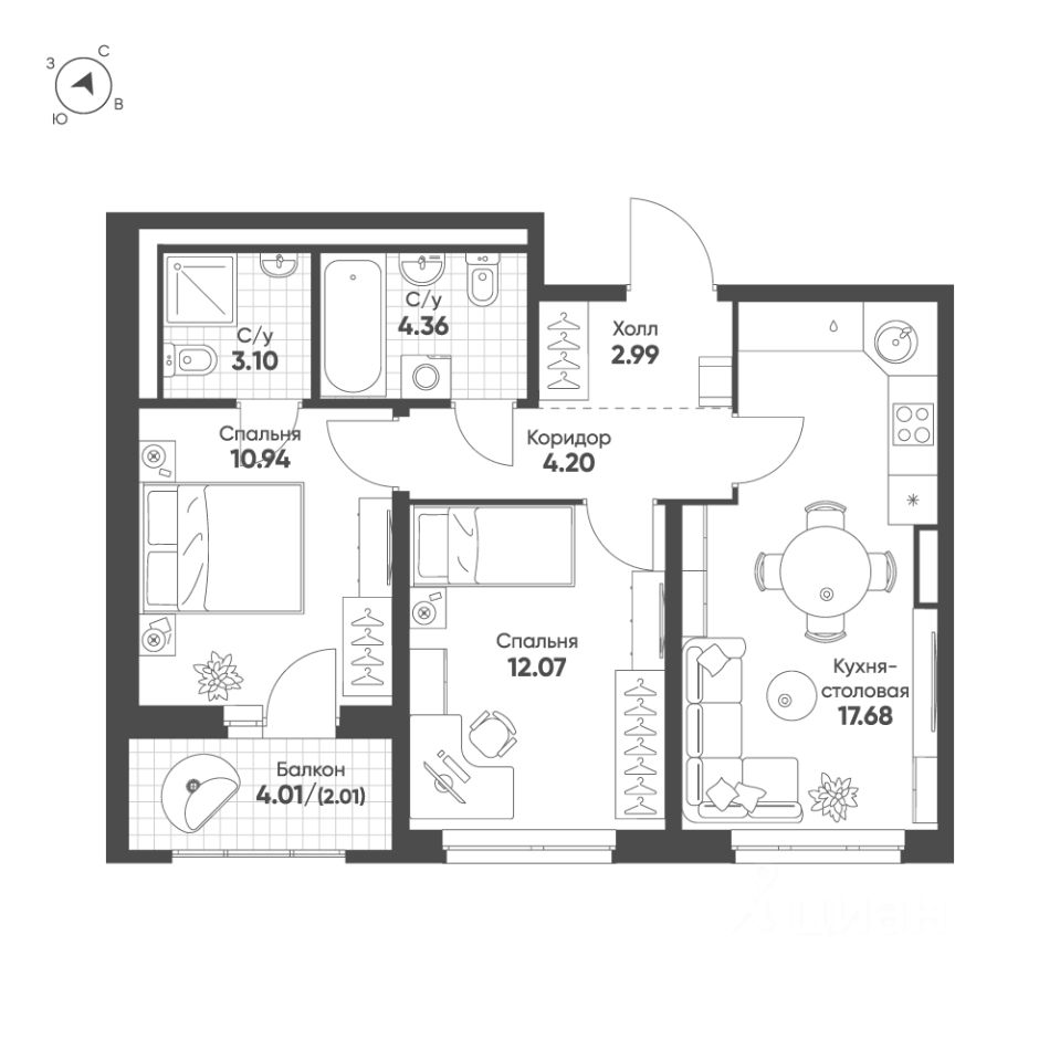 Продаётся 2-комнатная квартира в строящемся доме (Дом 6.2), срок сдачи: I-кв. 2026, общей площадью 57.4 кв.м., на 10 этаже. Новый жилой комплекс "Жилой район "Солнечный"" от застройщика "ГК Эталон" расположен по адресу: г. Екатеринбург, Золотистый бульвар.