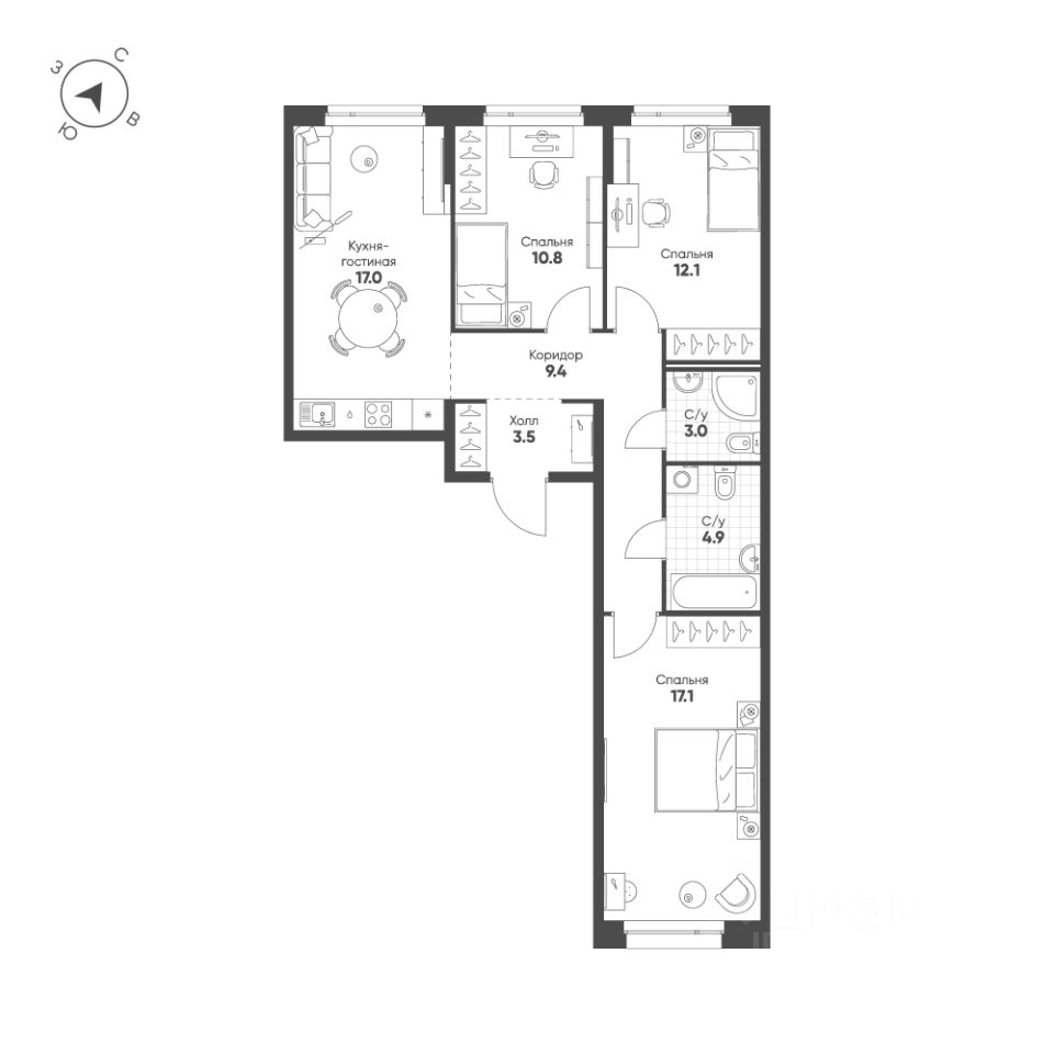 Продаётся 3-комнатная квартира в строящемся доме (Дом 7.3-7.4 Корпус 1.1-1.9), срок сдачи: IV-кв. 2028, общей площадью 77.8 кв.м., на 2 этаже. Новый жилой комплекс "Жилой район "Солнечный"" от застройщика "ГК Эталон" расположен по адресу: г. Екатеринбург, Золотистый бульвар.