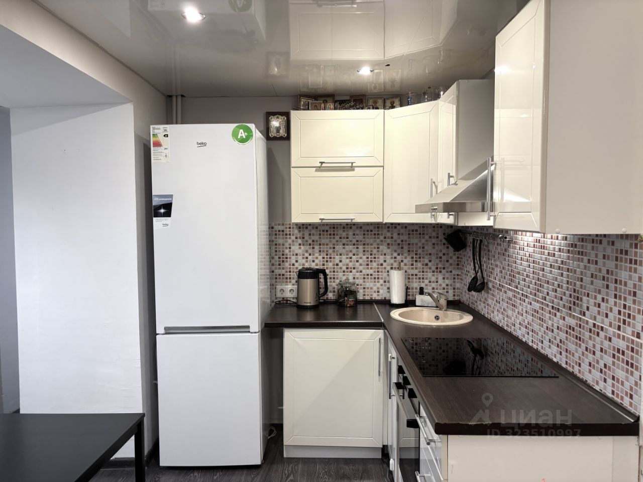 - кухонный гарнитур со встроенной техникой и обеденный стол,