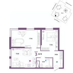 Объявление от застройщика Страна Девелопмент. Покупка квартиры защищена банком. Продается 3комнатная квартира на 14 этаже от застройщика Страна Девелопмент. Площадь квартиры 58,78 кв. м. Стоимость указана без учета акций. ОСОБЕННОСТИ: - Система Умный дом в каждой квартире - Двор-сад с приватной территорией и собственным бульваром - Охрана, видеонаблюдение 24/7 и доступ к камерам в мобильном приложении - Форматы квартир от 21 до 86 м2, европланировки с французскими балконами, угловым остеклением, лоджией, мастер-спальней, гардеробной. На верхних этажах расположены видовые квартиры ОТДЕЛКА: Мы сдаем квартиры с предчистовой отделкой. Всё уже готово к ремонту: выведена разводка электричества и отопления, выполнена стяжка пола, стены выровнены. Вам останется выбрать материалы и приступить к ремонту. При покупке квартиры в ЖК "Сибирский сад" можно включить стоимость ремонта в ипотеку. Застройщик предлагает три варианта цветовых решений: натуральный, светлый или тёмный. СПОСОБЫ ПОКУПКИ: Сотрудники Страны Девелопмент будут сопровождать вас на каждом этапе сделки, помогут получить одобрение по ипотеке или снизить ежемесячный платеж. - Ипотека - Материнский капитал - 100% оплата наличными Цены на квартиры указаны без учета скидок. На консультации менеджер подскажет, какие акции действуют, и как получить одобрение по ипотеке с низкой ставкой.