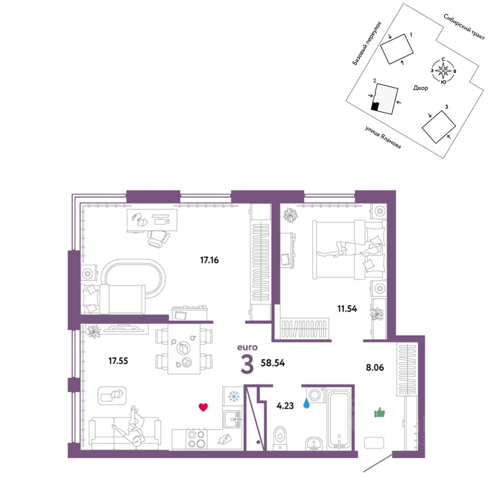 Объявление от застройщика Страна Девелопмент. Покупка квартиры защищена банком. Продается 3комнатная квартира на 17 этаже от застройщика Страна Девелопмент. Площадь квартиры 58,54 кв. м. Стоимость указана без учета акций. ОСОБЕННОСТИ: - Система Умный дом в каждой квартире - Двор-сад с приватной территорией и собственным бульваром - Охрана, видеонаблюдение 24/7 и доступ к камерам в мобильном приложении - Форматы квартир от 21 до 86 м2, европланировки с французскими балконами, угловым остеклением, лоджией, мастер-спальней, гардеробной. На верхних этажах расположены видовые квартиры ОТДЕЛКА: Мы сдаем квартиры с предчистовой отделкой. Всё уже готово к ремонту: выведена разводка электричества и отопления, выполнена стяжка пола, стены выровнены. Вам останется выбрать материалы и приступить к ремонту. При покупке квартиры в ЖК "Сибирский сад" можно включить стоимость ремонта в ипотеку. Застройщик предлагает три варианта цветовых решений: натуральный, светлый или тёмный. СПОСОБЫ ПОКУПКИ: Сотрудники Страны Девелопмент будут сопровождать вас на каждом этапе сделки, помогут получить одобрение по ипотеке или снизить ежемесячный платеж. - Ипотека - Материнский капитал - 100% оплата наличными Цены на квартиры указаны без учета скидок. На консультации менеджер подскажет, какие акции действуют, и как получить одобрение по ипотеке с низкой ставкой.