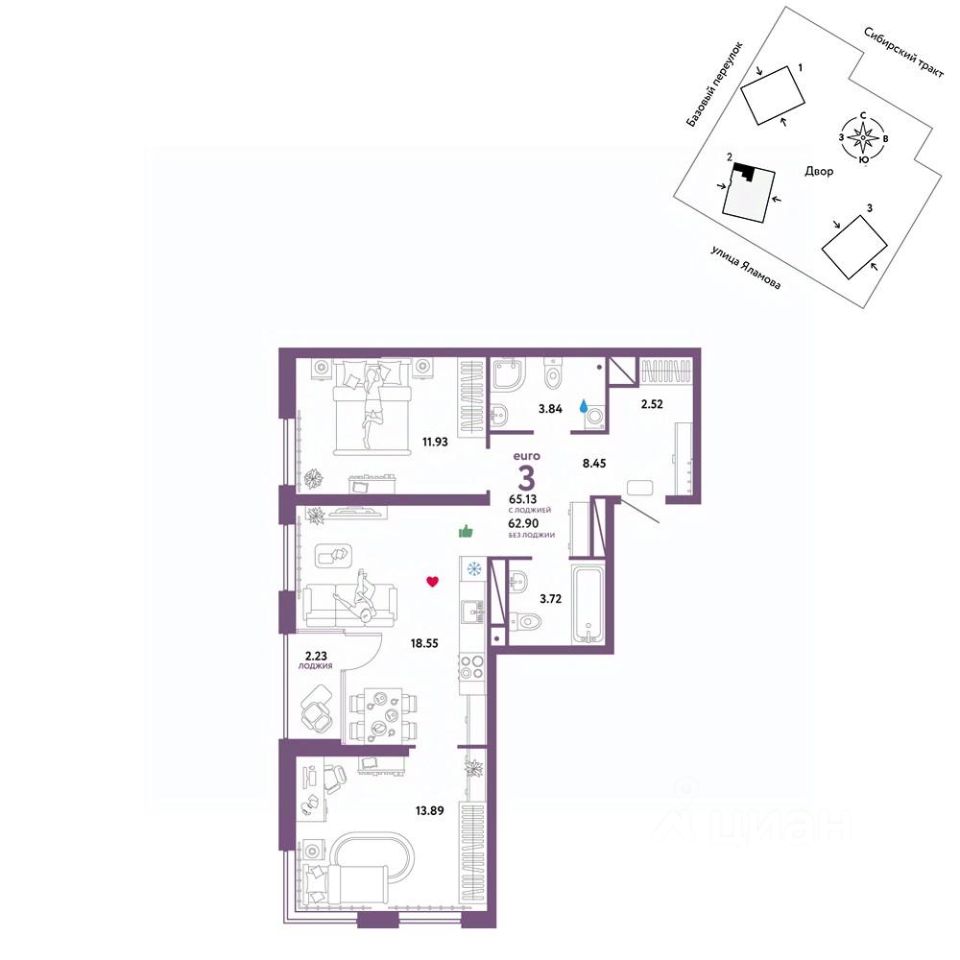 Объявление от застройщика Страна Девелопмент. Покупка квартиры защищена банком. Продается 3комнатная квартира на 25 этаже от застройщика Страна Девелопмент. Площадь квартиры 65,13 кв. м. Стоимость указана без учета акций. ОСОБЕННОСТИ: - Система Умный дом в каждой квартире - Двор-сад с приватной территорией и собственным бульваром - Охрана, видеонаблюдение 24/7 и доступ к камерам в мобильном приложении - Форматы квартир от 21 до 86 м2, европланировки с французскими балконами, угловым остеклением, лоджией, мастер-спальней, гардеробной. На верхних этажах расположены видовые квартиры ОТДЕЛКА: Мы сдаем квартиры с предчистовой отделкой. Всё уже готово к ремонту: выведена разводка электричества и отопления, выполнена стяжка пола, стены выровнены. Вам останется выбрать материалы и приступить к ремонту. При покупке квартиры в ЖК "Сибирский сад" можно включить стоимость ремонта в ипотеку. Застройщик предлагает три варианта цветовых решений: натуральный, светлый или тёмный. СПОСОБЫ ПОКУПКИ: Сотрудники Страны Девелопмент будут сопровождать вас на каждом этапе сделки, помогут получить одобрение по ипотеке или снизить ежемесячный платеж. - Ипотека - Материнский капитал - 100% оплата наличными Цены на квартиры указаны без учета скидок. На консультации менеджер подскажет, какие акции действуют, и как получить одобрение по ипотеке с низкой ставкой.