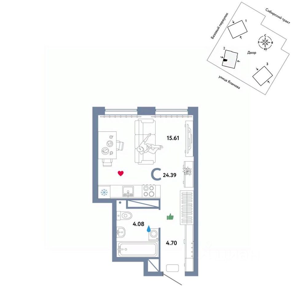 Объявление от застройщика Страна Девелопмент. Покупка квартиры защищена банком. Продается 0комнатная квартира на 26 этаже от застройщика Страна Девелопмент. Площадь квартиры 24,39 кв. м. Стоимость указана без учета акций. ОСОБЕННОСТИ: - Система Умный дом в каждой квартире - Двор-сад с приватной территорией и собственным бульваром - Охрана, видеонаблюдение 24/7 и доступ к камерам в мобильном приложении - Форматы квартир от 21 до 86 м2, европланировки с французскими балконами, угловым остеклением, лоджией, мастер-спальней, гардеробной. На верхних этажах расположены видовые квартиры ОТДЕЛКА: Мы сдаем квартиры с предчистовой отделкой. Всё уже готово к ремонту: выведена разводка электричества и отопления, выполнена стяжка пола, стены выровнены. Вам останется выбрать материалы и приступить к ремонту. При покупке квартиры в ЖК "Сибирский сад" можно включить стоимость ремонта в ипотеку. Застройщик предлагает три варианта цветовых решений: натуральный, светлый или тёмный. СПОСОБЫ ПОКУПКИ: Сотрудники Страны Девелопмент будут сопровождать вас на каждом этапе сделки, помогут получить одобрение по ипотеке или снизить ежемесячный платеж. - Ипотека - Материнский капитал - 100% оплата наличными Цены на квартиры указаны без учета скидок. На консультации менеджер подскажет, какие акции действуют, и как получить одобрение по ипотеке с низкой ставкой.