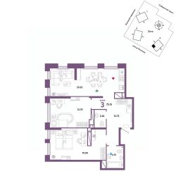 Продается 3комнатная квартира на 28 этаже от застройщика Страна Девелопмент. Площадь квартиры 74,91 кв. м. Стоимость указана без учета акций.