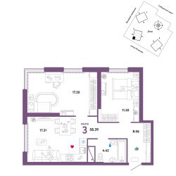 Объявление от застройщика Страна Девелопмент. Покупка квартиры защищена банком. Продается 3комнатная квартира на 9 этаже от застройщика Страна Девелопмент. Площадь квартиры 58,39 кв. м. Стоимость указана без учета акций. ОСОБЕННОСТИ: - Система Умный дом в каждой квартире - Двор-сад с приватной территорией и собственным бульваром - Охрана, видеонаблюдение 24/7 и доступ к камерам в мобильном приложении - Форматы квартир от 21 до 86 м2, европланировки с французскими балконами, угловым остеклением, лоджией, мастер-спальней, гардеробной. На верхних этажах расположены видовые квартиры ОТДЕЛКА: Мы сдаем квартиры с предчистовой отделкой. Всё уже готово к ремонту: выведена разводка электричества и отопления, выполнена стяжка пола, стены выровнены. Вам останется выбрать материалы и приступить к ремонту. При покупке квартиры в ЖК "Сибирский сад" можно включить стоимость ремонта в ипотеку. Застройщик предлагает три варианта цветовых решений: натуральный, светлый или тёмный. СПОСОБЫ ПОКУПКИ: Сотрудники Страны Девелопмент будут сопровождать вас на каждом этапе сделки, помогут получить одобрение по ипотеке или снизить ежемесячный платеж. - Ипотека - Материнский капитал - 100% оплата наличными Цены на квартиры указаны без учета скидок. На консультации менеджер подскажет, какие акции действуют, и как получить одобрение по ипотеке с низкой ставкой.