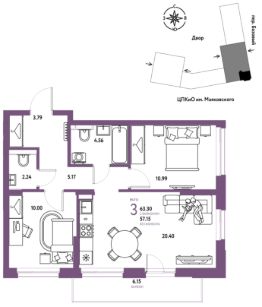 Продаётся 3-комнатная квартира в строящемся доме (Арт-Квартал (3 этап)), срок сдачи: III-кв. 2028, общей площадью 63.3 кв.м., на 7 этаже. Новые жилые дома от Группы компаний "Страна Девелопмент" расположены в Октябрьском районе Екатеринбурга в границах ул. Сибирский тракт - Базовый переулок.