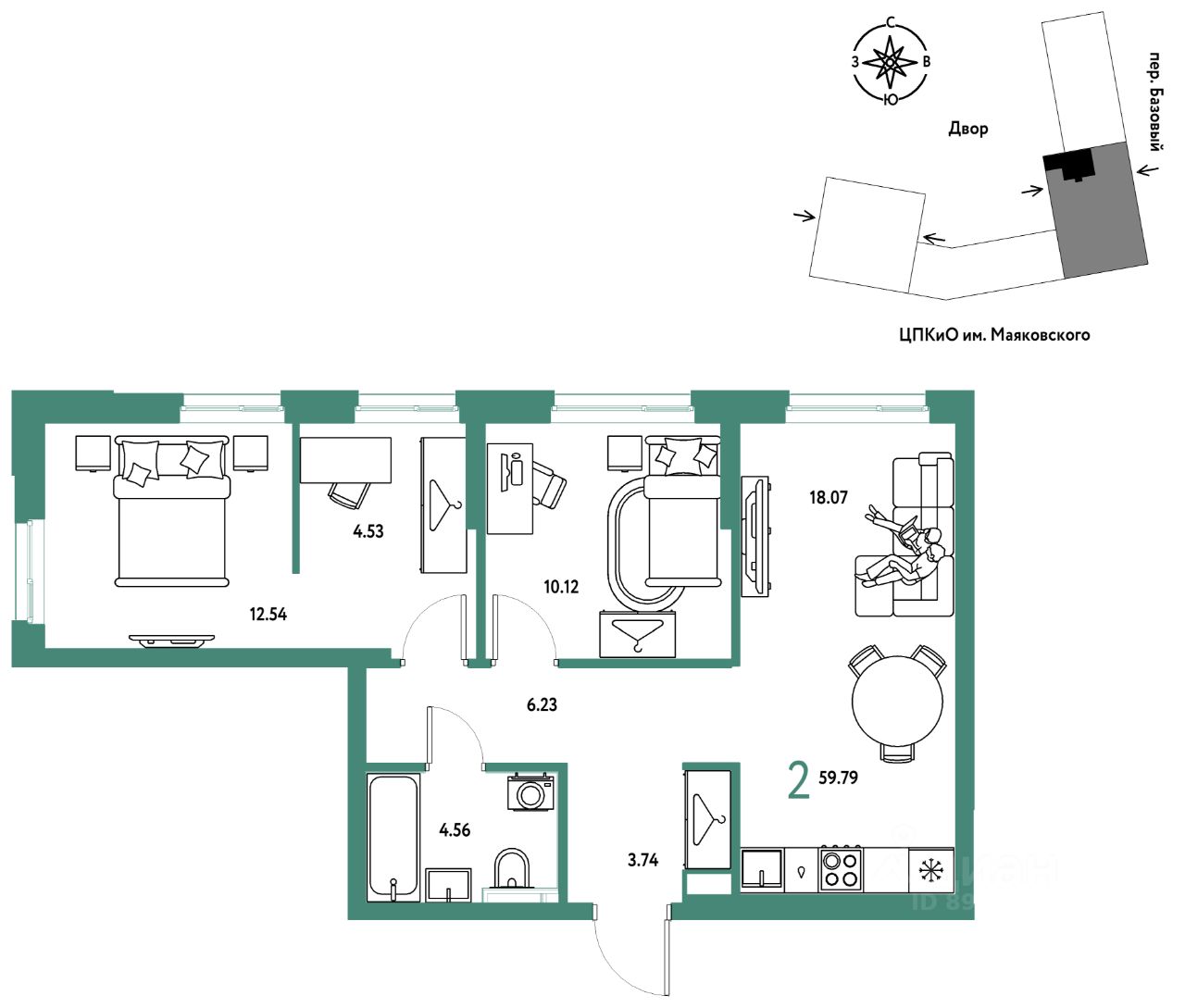 Продаётся 2-комнатная квартира в строящемся доме (Арт-Квартал (3 этап)), срок сдачи: III-кв. 2028, общей площадью 59.79 кв.м., на 13 этаже. Новые жилые дома от Группы компаний "Страна Девелопмент" расположены в Октябрьском районе Екатеринбурга в границах ул. Сибирский тракт - Базовый переулок.
