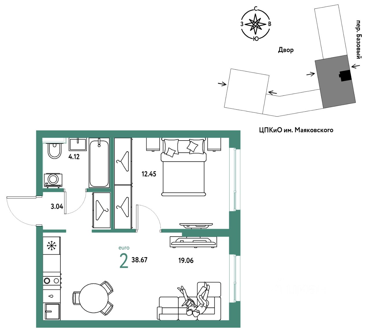 38,67 м²