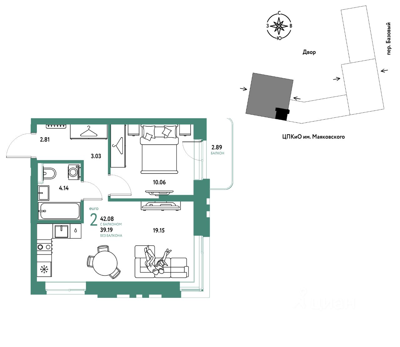 42,08 м²