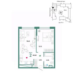Продается 2комнатная квартира на 11 этаже от застройщика Страна Девелопмент. Площадь квартиры 40,63 кв. м. Стоимость указана без учета акций.