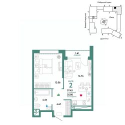 Продается 2комнатная квартира на 16 этаже от застройщика Страна Девелопмент. Площадь квартиры 37,43 кв. м. Стоимость указана без учета акций.