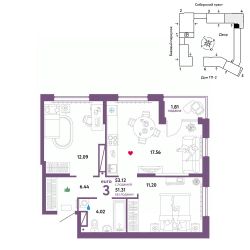 Продается 3комнатная квартира на 24 этаже от застройщика Страна Девелопмент. Площадь квартиры 53,12 кв. м. Стоимость указана без учета акций.