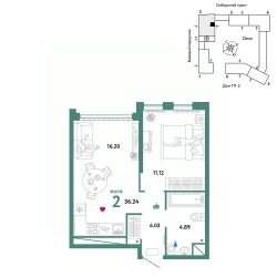 Продается 2комнатная квартира на 26 этаже от застройщика Страна Девелопмент. Площадь квартиры 36,24 кв. м. Стоимость указана без учета акций.