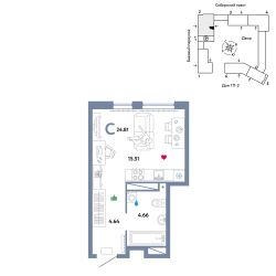 Продается студия на 21 этаже от застройщика Страна Девелопмент. Площадь квартиры 24,81 кв. м. Стоимость указана без учета акций.