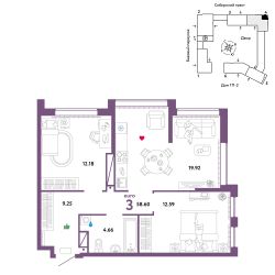 Продается 3комнатная квартира на 23 этаже от застройщика Страна Девелопмент. Площадь квартиры 58,6 кв. м. Стоимость указана без учета акций.