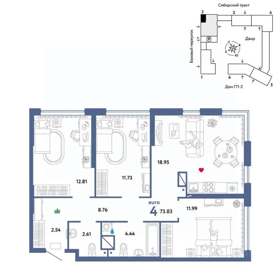 Продается 4комнатная квартира на 5 этаже от застройщика Страна Девелопмент. Площадь квартиры 73,83 кв. м. Стоимость указана без учета акций.