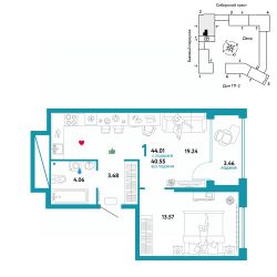Продается 1комнатная квартира на 17 этаже от застройщика Страна Девелопмент. Площадь квартиры 44,01 кв. м. Стоимость указана без учета акций.