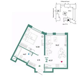 Продается 2комнатная квартира на 14 этаже от застройщика Страна Девелопмент. Площадь квартиры 42,27 кв. м. Стоимость указана без учета акций.