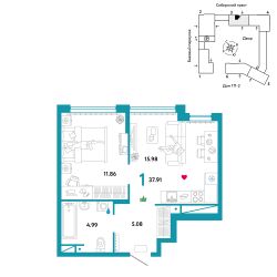 Продается 1комнатная квартира на 13 этаже от застройщика Страна Девелопмент. Площадь квартиры 37,91 кв. м. Стоимость указана без учета акций.