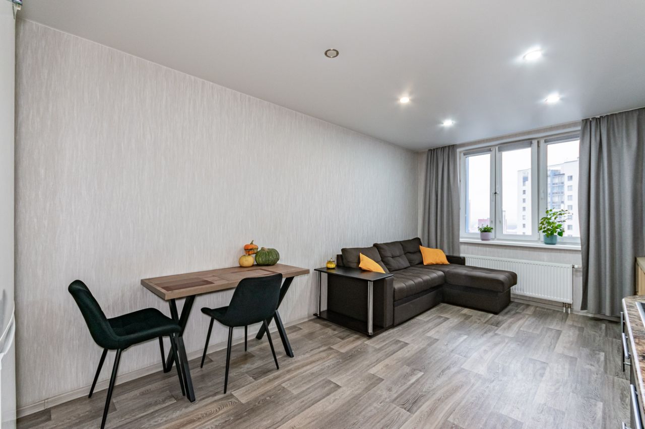 ООО Бюро недвижимости Зыряновой предлагает к продаже квартиру европланировки (кухня-гостиная и спальня) близко к центру города.